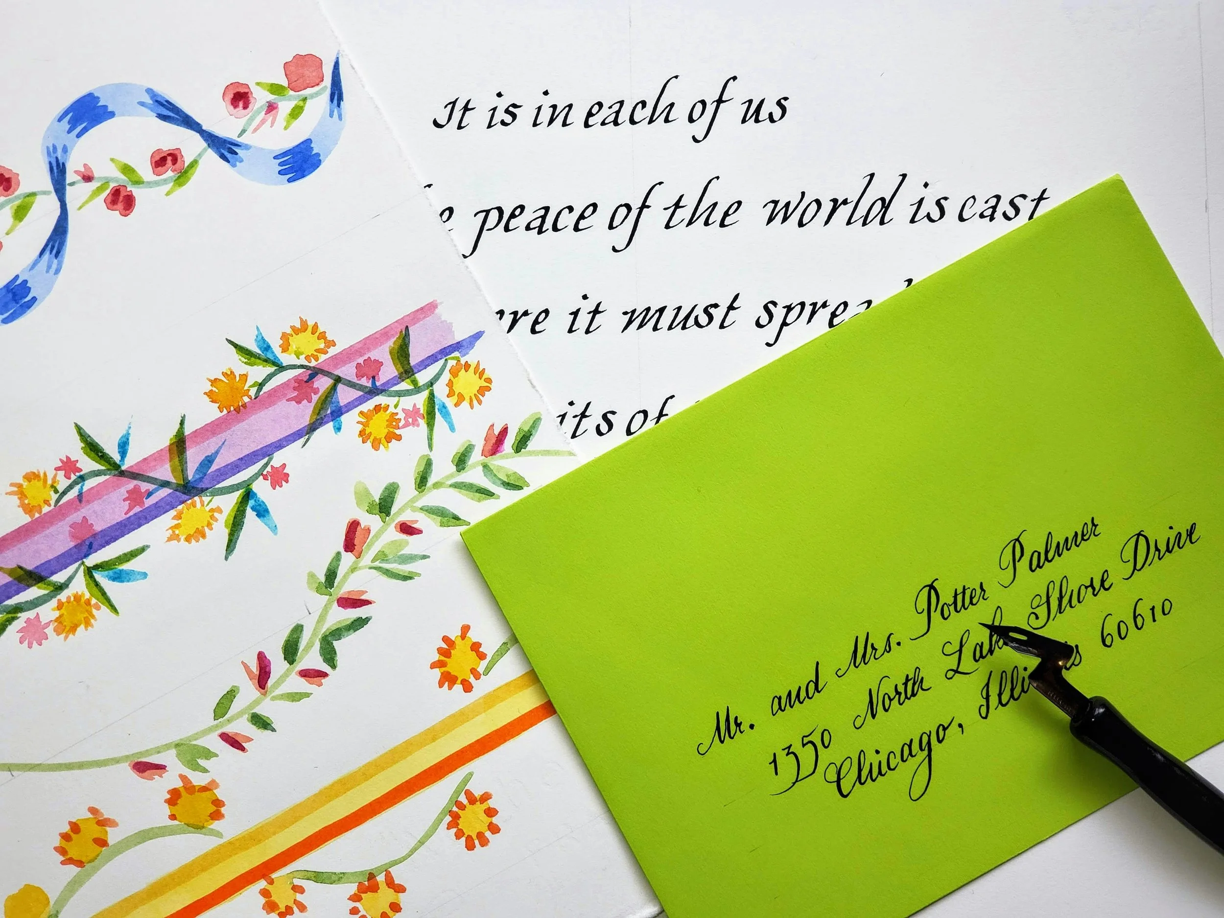 Consult with Judith Joseph to create a personalized, custom invitation or for event calligraphy on place cards, envelopes, etc.