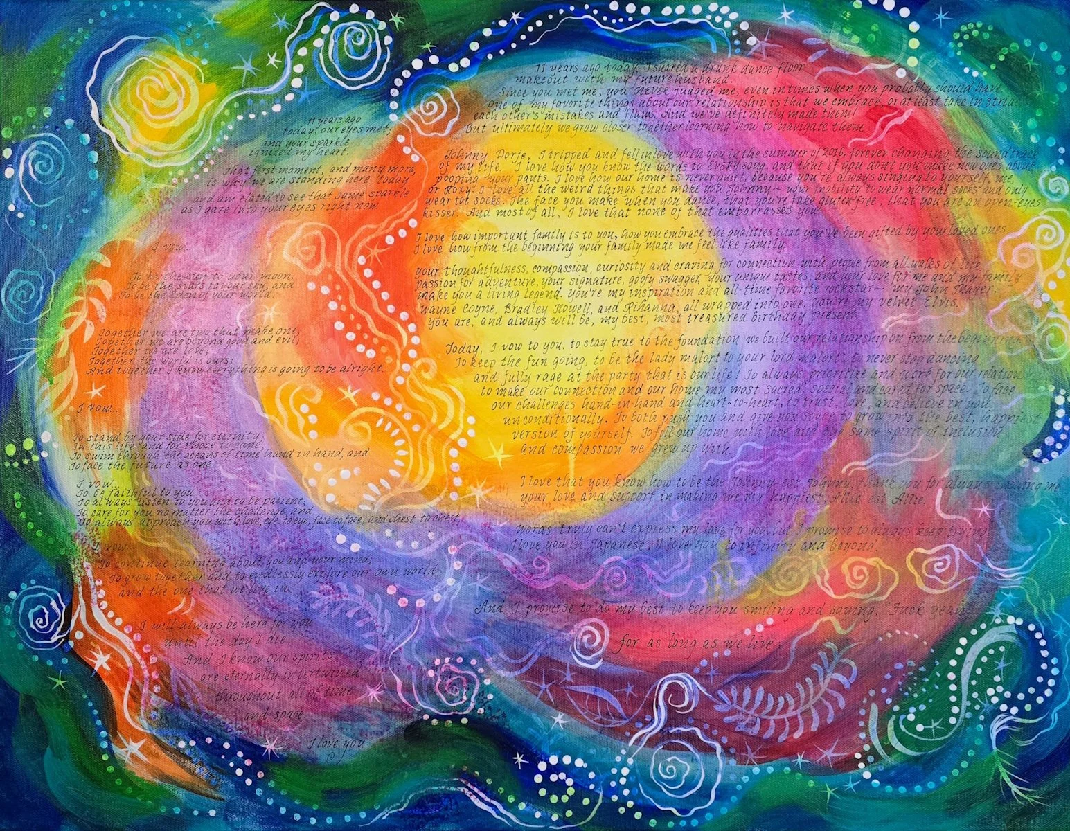 Judith Joseph is a calligrapher and artist who creates ketubahs, paintings and woodcuts. She is inspired by nature, folklore, literature and family stories.