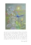 White Irises with Wood Hummingbird, Watercolor; Michaelangelo font